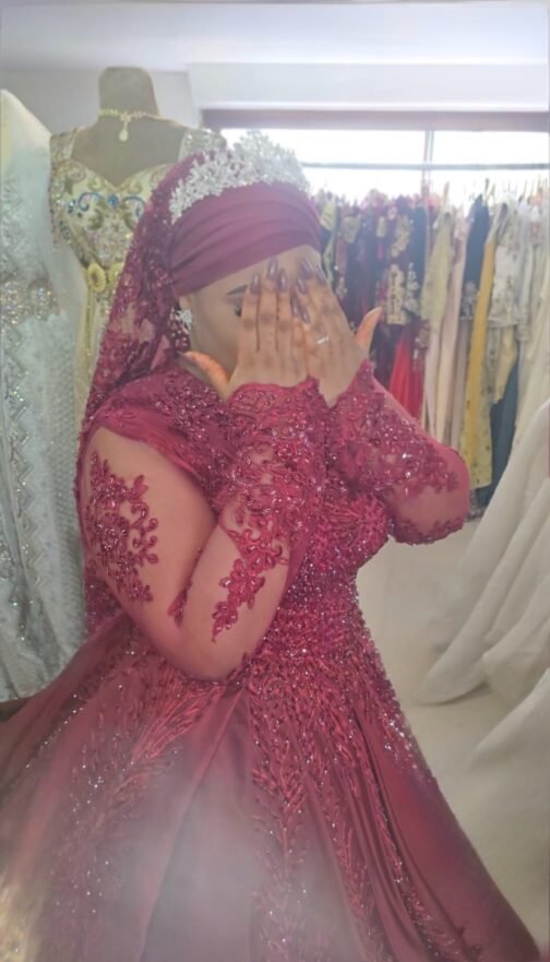 Sublime robe princesse bordeau idéale pour découper votre pièce montée