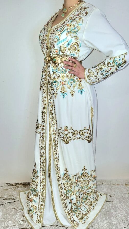 Sublime takchita traditionnelle, minutieusement perlée et brodée.