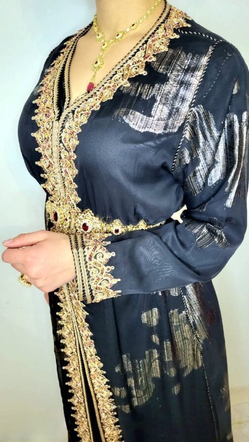 Magnifique takchita traditionnelle, minutieusement cousue dans un tissu Tlijia